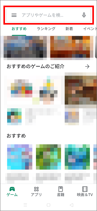 表示された画面の上部にあるGoogle Playの「検索」に【googleduo】と入力して「検索」を押します。