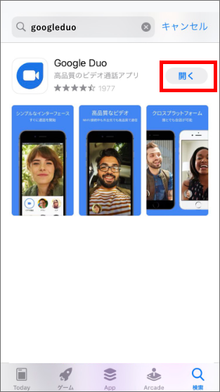 「Google Duo」が表示されたら、「入手」ボタンを押します。